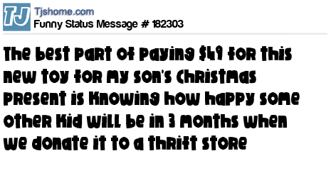 X says The best part of paying $49 for this new toy for my son's Christmas present is knowing how happy some other kid will be in 3 months when we donate it to a thrift store