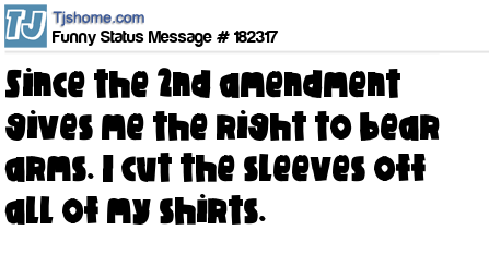 X is Since the 2nd amendment gives me the right to bear arms. I cut the sleeves off all of my shirts.