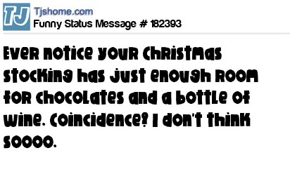 X Ever notice your Christmas stocking has just enough room for chocolates and a bottle of wine. Coincidence? I don't think soooo.