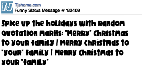 X says Spice up the holidays with random quotation marks: "Merry" Christmas to your family / Merry Christmas to "your" family / Merry Christmas to your "family"