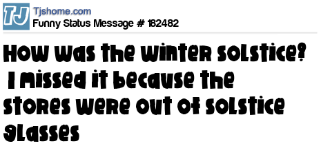X says How was the winter solstice? I missed it because the stores were out of solstice glasses