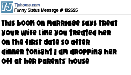 X says This book on marriage says treat your wife like you treated her on the first date so after dinner tonight I am dropping her off at her parents' house