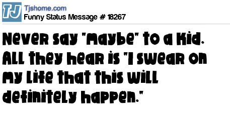 - # 31465 When you tell a kid "maybe" all they here is "I swear on my life this will DEF happen!"