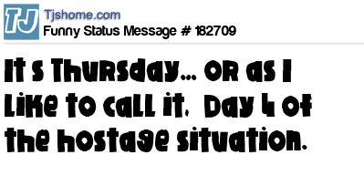 X says It’s Thursday… or as I like to call it, “Day 4 of the hostage situation.”