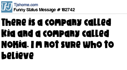 - # 155565 There is a company called Kia and a company called Nokia. I’m not sure who to believe.