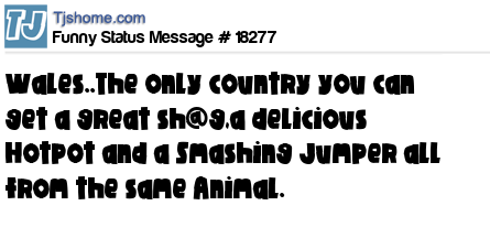 - # 49271 Wales.... the only country where you can get a delicious hotpot, a smashing jumper and a decent shag... all from the same animal!