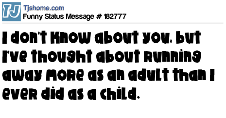 X says I don't know about you, but I've thought about running away more as an adult than I ever did as a child.