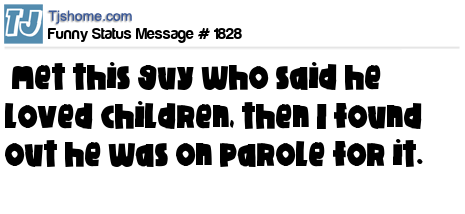 - # 33883 I just met a very nice man who said he loves children. Then I found out he was on parole for it.