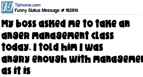 X says My boss asked me to take an anger management class today. I told him I was angry enough with management as it is