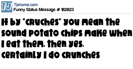 X says If by "cruches" you mean the sound potato chips make when I eat them, then yes, certainly I do crunches