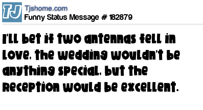 - # 25688 Two antennas met on a roof, fell in love and got married. The ceremony wasn't much, but the reception was excellent. Thank you and good night, drive safely, I'll be here all week.