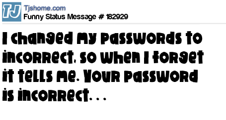 - # 47295 All of my passwords are "incorrect" so my computer always tells me if I forget.