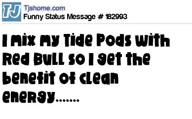 X says I mix my Tide Pods with Red Bull so I get the benefit of clean energy.......