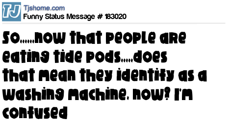 X is So,,,,,,now that people are eating tide pods,,,,,does that mean they identify as a washing machine, now? I'm confused