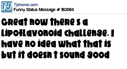 X Great now there’s a lipoflavonoid challenge. I have no idea what that is but it doesn’t sound good