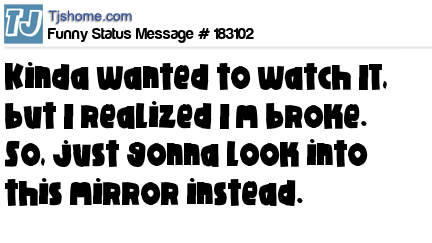 X says Kinda wanted to watch IT, but I realized I’m broke. So, just gonna look into this mirror instead.