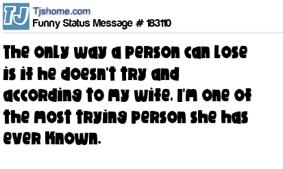 X says The only way a person can lose is if he doesn't try and according to my wife, I'm one of the most trying person she has ever known.