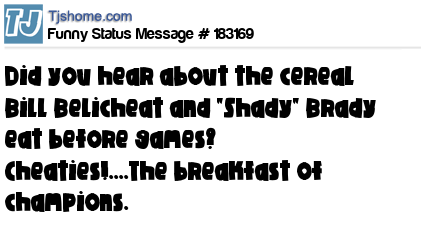X is Did you hear about the cereal Bill Belicheat and "Shady" Brady eat before games? Cheaties!....The breakfast of champions.