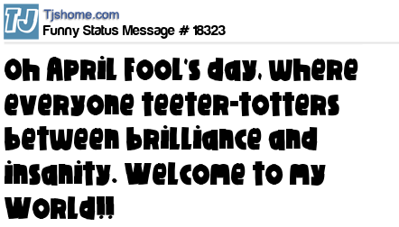 X is Oh April Fool's day, where everyone teeter-totters between brilliance and insanity. Welcome to my World!!