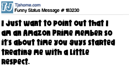 X says I just want to point out that I am an Amazon Prime member so it's about time you guys started treating me with a little respect.