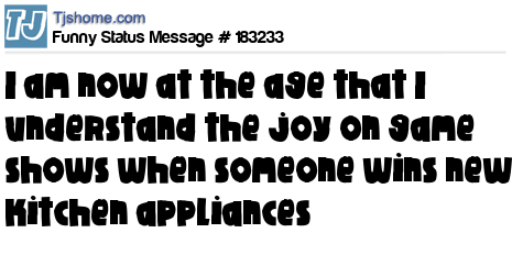 X says I am now at the age that I understand the joy on game shows when someone wins new kitchen appliances