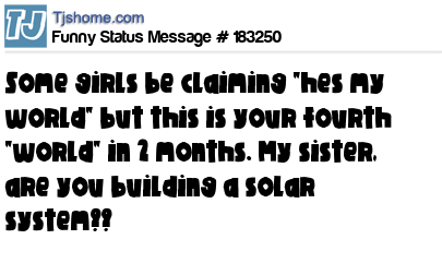 X says Some girls be claiming "hes my world" but this is your fourth "world" in 2 months. My sister, are you building a solar system??