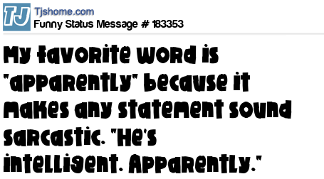 X says My favorite word is "apparently" because it makes any statement sound sarcastic. "He's intelligent. Apparently."