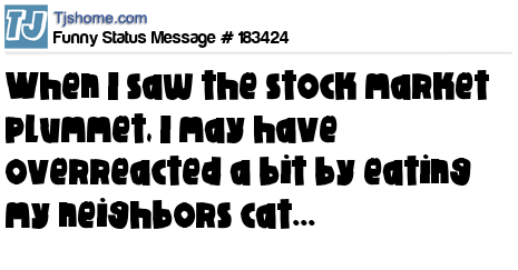 X When I saw the stock market plummet, I may have overreacted a bit by eating my neighbors cat...