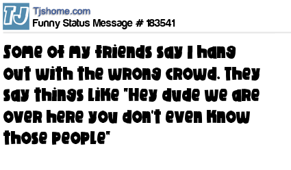 X says Some of my friends say I hang out with the wrong crowd. They say things like "Hey dude we are over here you don't even know those people"