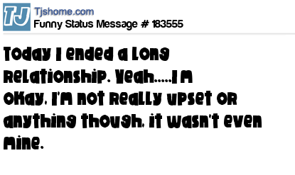 X is Today I ended a long relationship. Yeah.....I’m okay, I'm not really upset or anything though, it wasn't even mine.