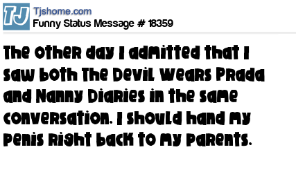 X  The other day I admitted that I saw both The Devil Wears Prada and Nanny Diaries in the same conversation. I should hand my penis right back to my parents.