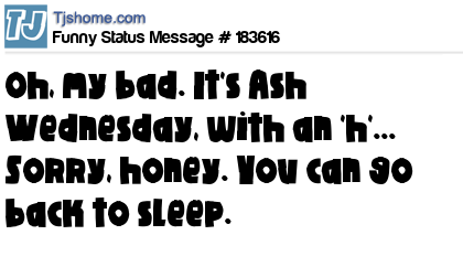 X says Oh, my bad. It's Ash Wednesday, with an 'h'... Sorry, honey. You can go back to sleep.