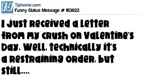 - # 174733 I got a letter from my crush on Valentine's Day. Well, technically it's a restraining order but still....