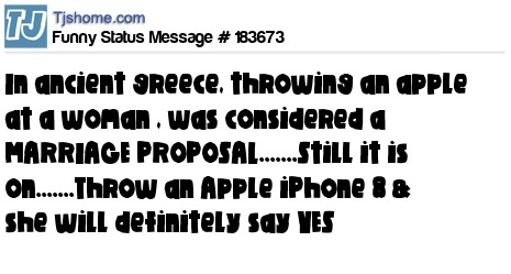 X says In ancient greece, throwing an apple at a woman , was considered a MARRIAGE PROPOSAL.......Still it is on.......Throw an Apple iPhone 8 & she will definitely say YES