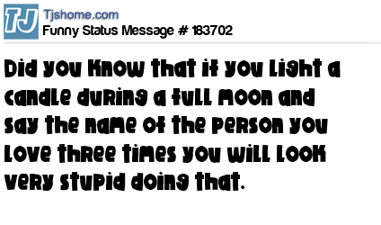 - # 86115 Did you know, if on a full moon if you light a candle and say the name of someone you love 3 times, you'll look stupid doing that?