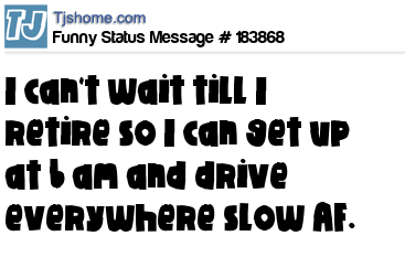 - # 209096 I can't wait till I retire! So that I can get up at 6am and drive around REAL slow and make everybody late for work.