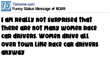 - # 124769 I am really surprised that there are not more women race car drivers! Women drive all over town like race car drivers!
