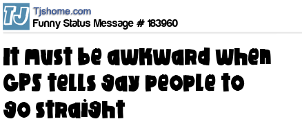 - # 47739 It must be awkward when GPS navigation tells gay people to go straight.