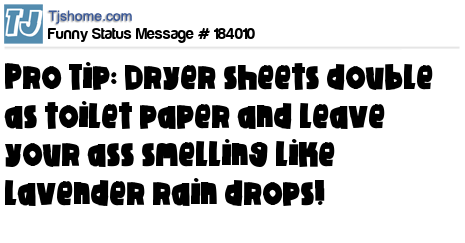 - # 61391 Did you know dryer sheets double as toilet paper and leave your ass smelling like meadows and rain drops?