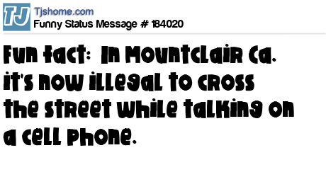 X is Fun fact: In Mountclair Ca. it's now illegal to cross the street while talking on a cell phone.