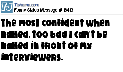 X is the most confident when naked, too bad I can't be naked in front of my interviewers.