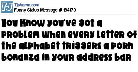- # 146523 I think you know you've got a problem when every letter of the alphabet triggers a porn bonanza in your address bar.
