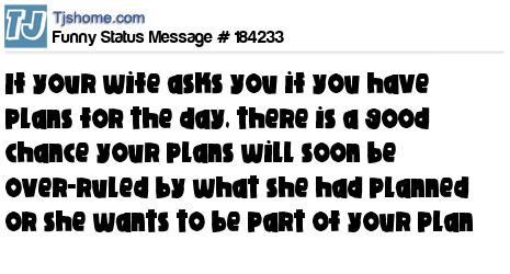X says If your wife asks you if you have plans for the day, there is a good chance your plans will soon be over-ruled by what she had planned or she wants to be part of your plan
