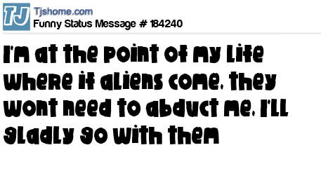 X says I'm at the point of my life where if aliens come, they wont need to abduct me, I'll gladly go with them