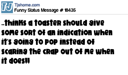 X ..thinks a toaster should give some sort of an indication when it's going to pop instead of scaring the crap out of me when it does!!