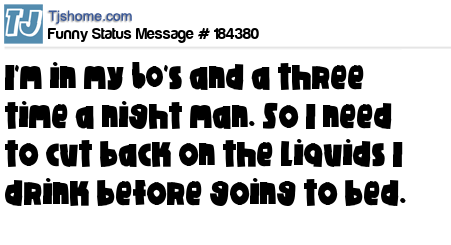 X is I'm in my 60's and a three time a night man. So I need to cut back on the liquids I drink before going to bed.