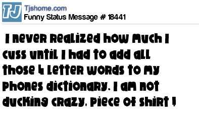 X I never realized how much I cuss until I had to add all those 4 letter words to my phones dictionary. I am not ducking crazy, piece of shirt !