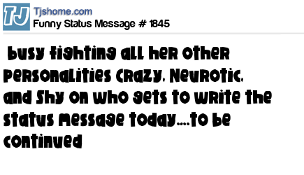 X is busy fighting all her other personalities Crazy, Neurotic, and Shy on who gets to write the status message today….to be continued