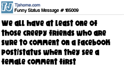 - # 126692 We all have at least one of those creepy friends who are sure to comment on a facebook post/status when they see a female comment first...