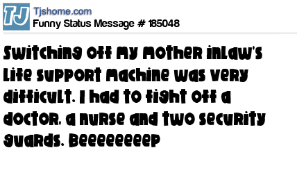 X is Switching off my mother inlaw's life support machine was very difficult. I had to fight off a doctor, a nurse and two security guards. Beeeeeeeep